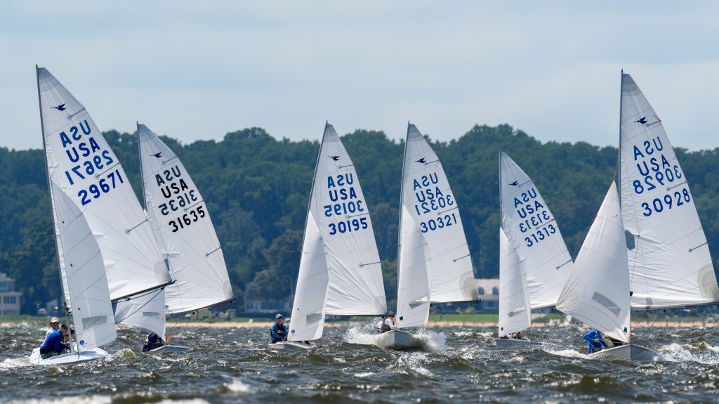 Leading up to the event, the forecast showed multiple days of thunderstorms, though none negatively impacted the sailing. Instead, the nearby storms brought WIND! The conditions on Saturday morning looked “champagne”, but soon built to “challenging” by the end of the day, building to 16-18 knots from the south with 2-foot rolling chop, compounded by large yacht wakes heading up the Chesapeake.