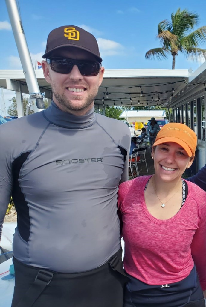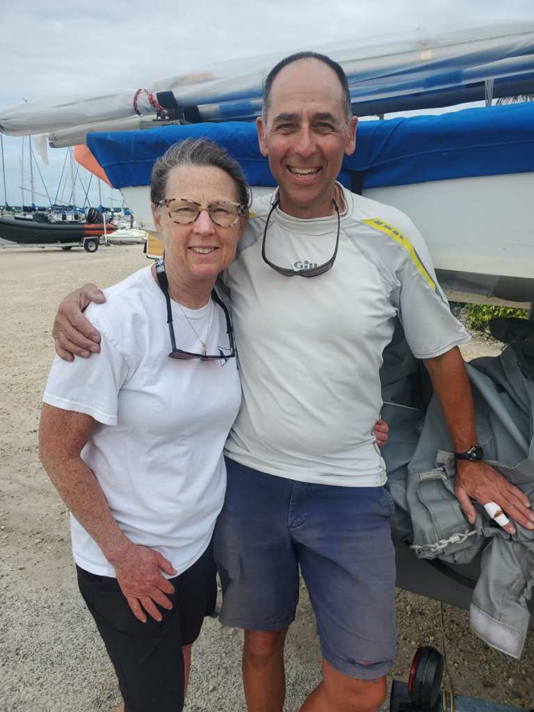 The conditions on Saturday were ideal with a lovely 8-14kt offshore breeze in the very protected Buttonwood Sound on the north shore of Key Largo, allowing the RC to get in 4 races. Even when the front rolled through on Sunday morning and the breeze was a solid 15-20kt, the protected waters made it like sailing on a big beautiful lake with palm trees, enabling 2 more races to be sailed (6 total). The nature of the sound made for short course racing (30-40 minutes), which of course in this competitive fleet means super tight roundings and several general recalls until the U-flag became the standard modus operendi. Upper Keys Sailing Club was super welcoming with great hospitality (pizza Friday, Cuban dinner Saturday, and cookout after racing Sunday), a great bar, a casual yard vibe with plenty of space, easy beach launching, and friendly members. They seemed to enjoy hosting us as much as we enjoyed being there!