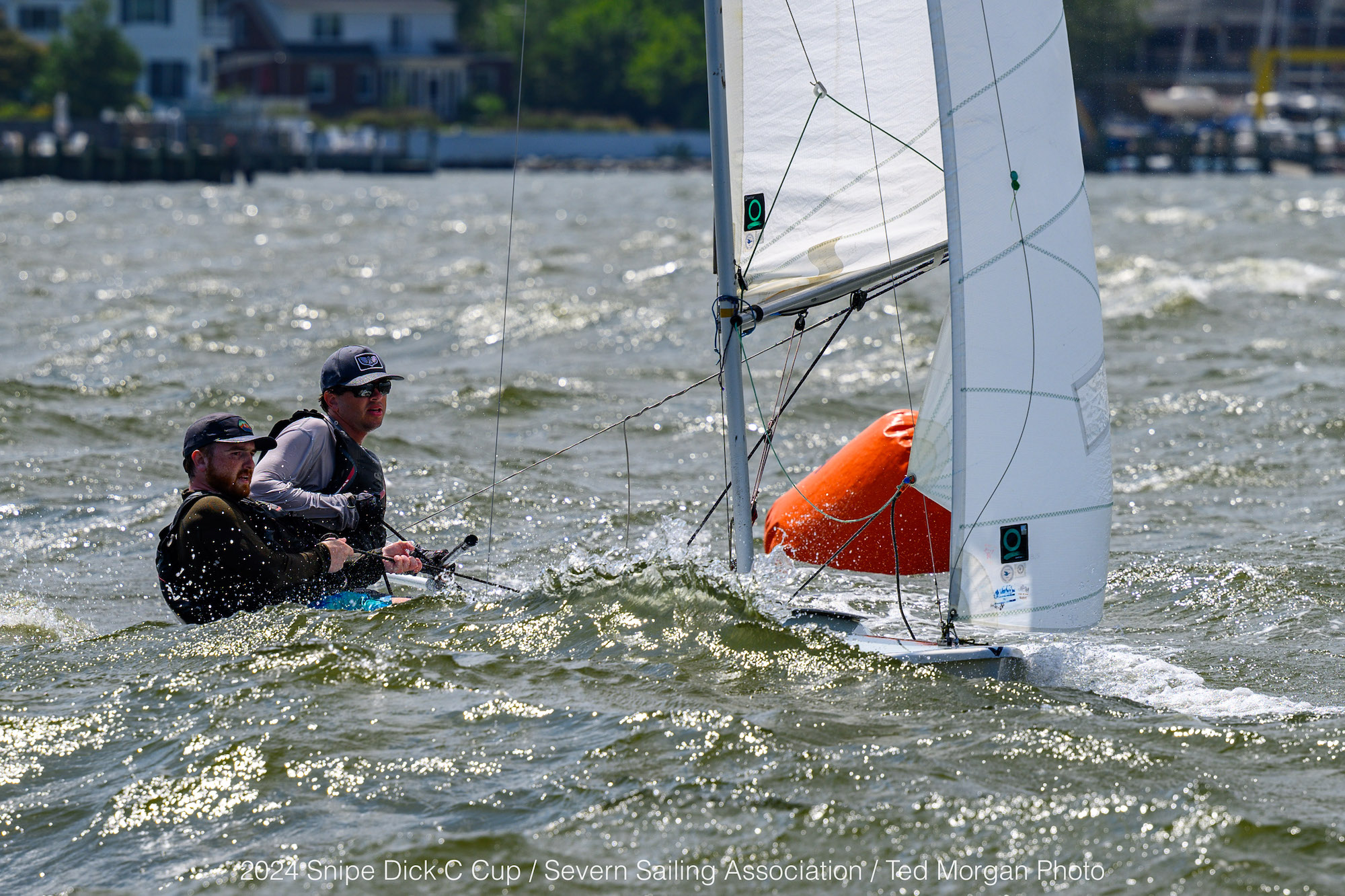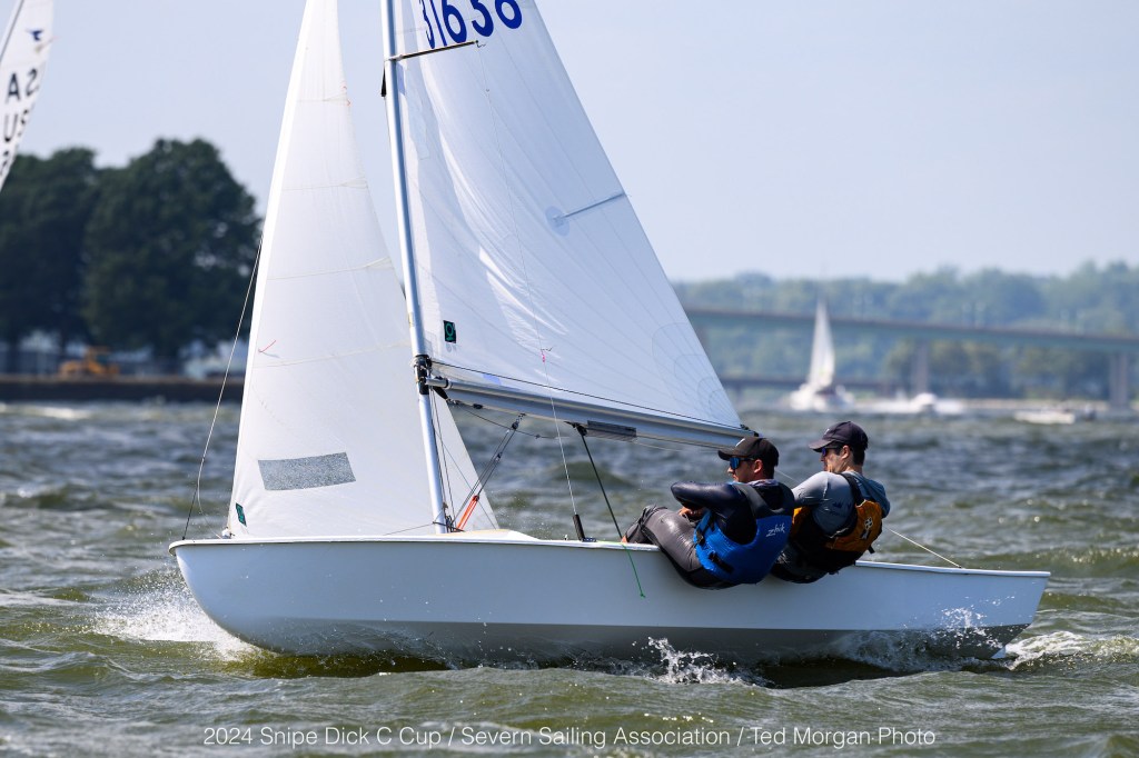 The Second Annual DickC Cup was again a huge success, reuniting Snipe Alumni with current fleet members and new-to-the-Snipe sailors with fifteen teams comprising the A/B college-style regatta (15 “A” and 15 “B”) on August 3-4, 2024. Over the weekend, 16 races were completed on the course in the Severn River right off the Severn Sailing Association in a range of wind conditions that tested new and experienced teams alike.