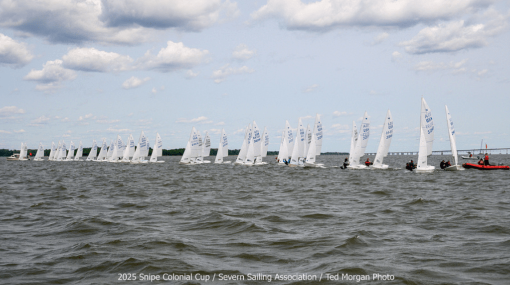 The first weekend of June saw another record-breaking Colonial Cup with 48 registrants. The Colonial Cup has become the premier northeast Spring regatta in the last few years as Annapolis has a strong local fleet that is able to provide housing to competitors, a great venue at the Severn Sailing Association and interesting and challenging sailing conditions. Additionally this year’s regatta was a qualifier for the 2026 Snipe World Championships. This all comes together for some Serious Sailing, Serious Fun®.