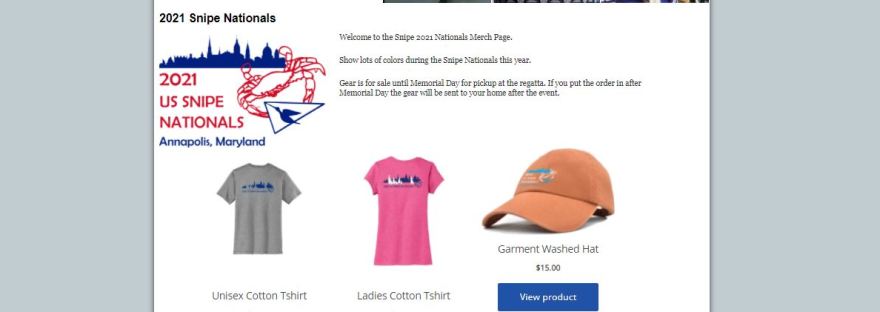 The Swag Store is LIVE! The Nationals Team has put together a full complement of cool Snipe gear that lets you choose your own style: Are you a cotton shirt guy? Polo gal? Love the tech material? Hat more your style? YOU CHOOSE! Instead of giving away a shirt you may or may not wear, the 2021 Nationals Regatta will give you the coupon equivalent of a cotton tshirt ($10 per person) that you can use to either redeem a FREE cotton tshirt (in a multitude of colors) OR you can apply the coupon towards any of the other higher end offerings.